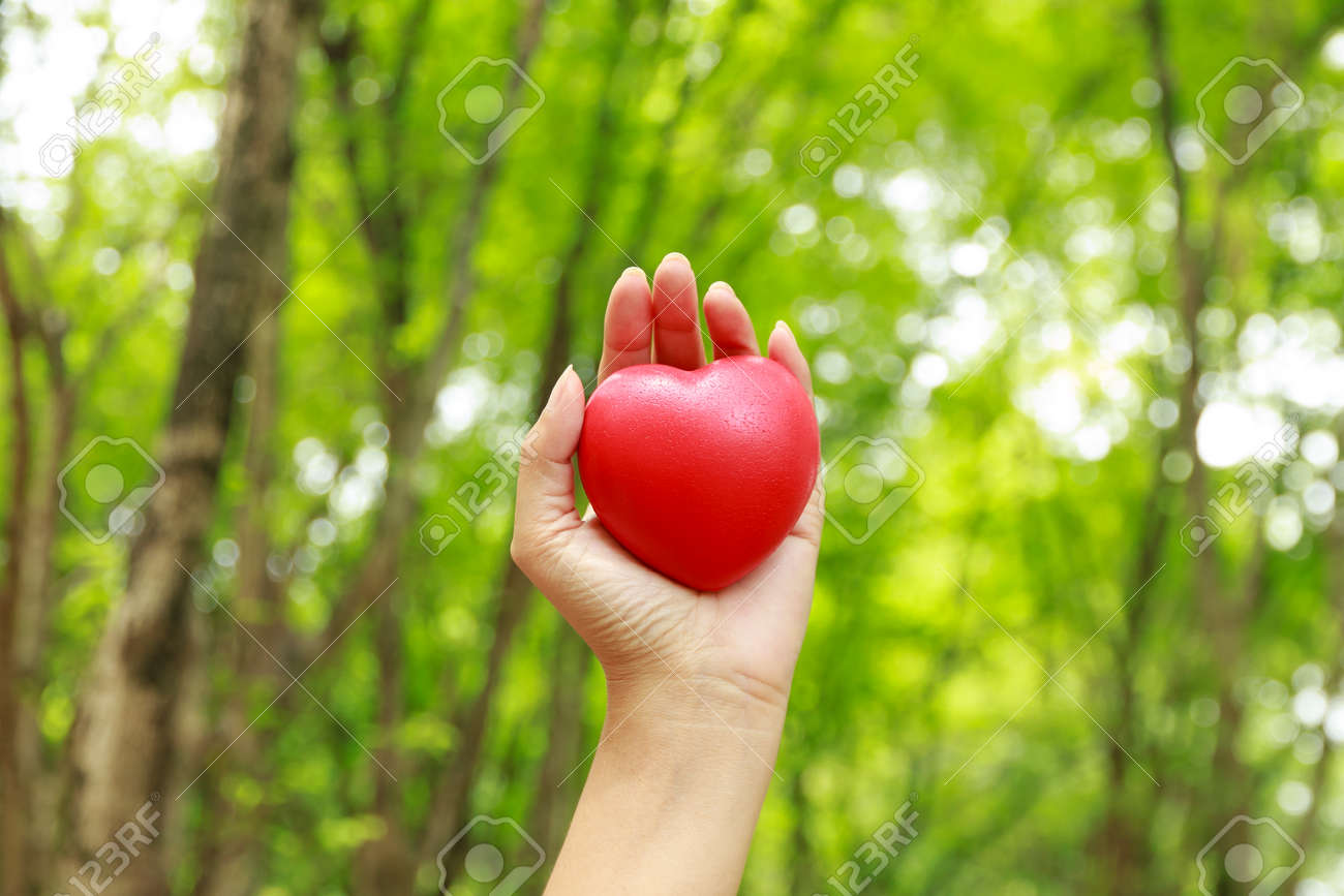 Foto Von Zwei Hände Halten Ein Rotes Herz Mit Natur