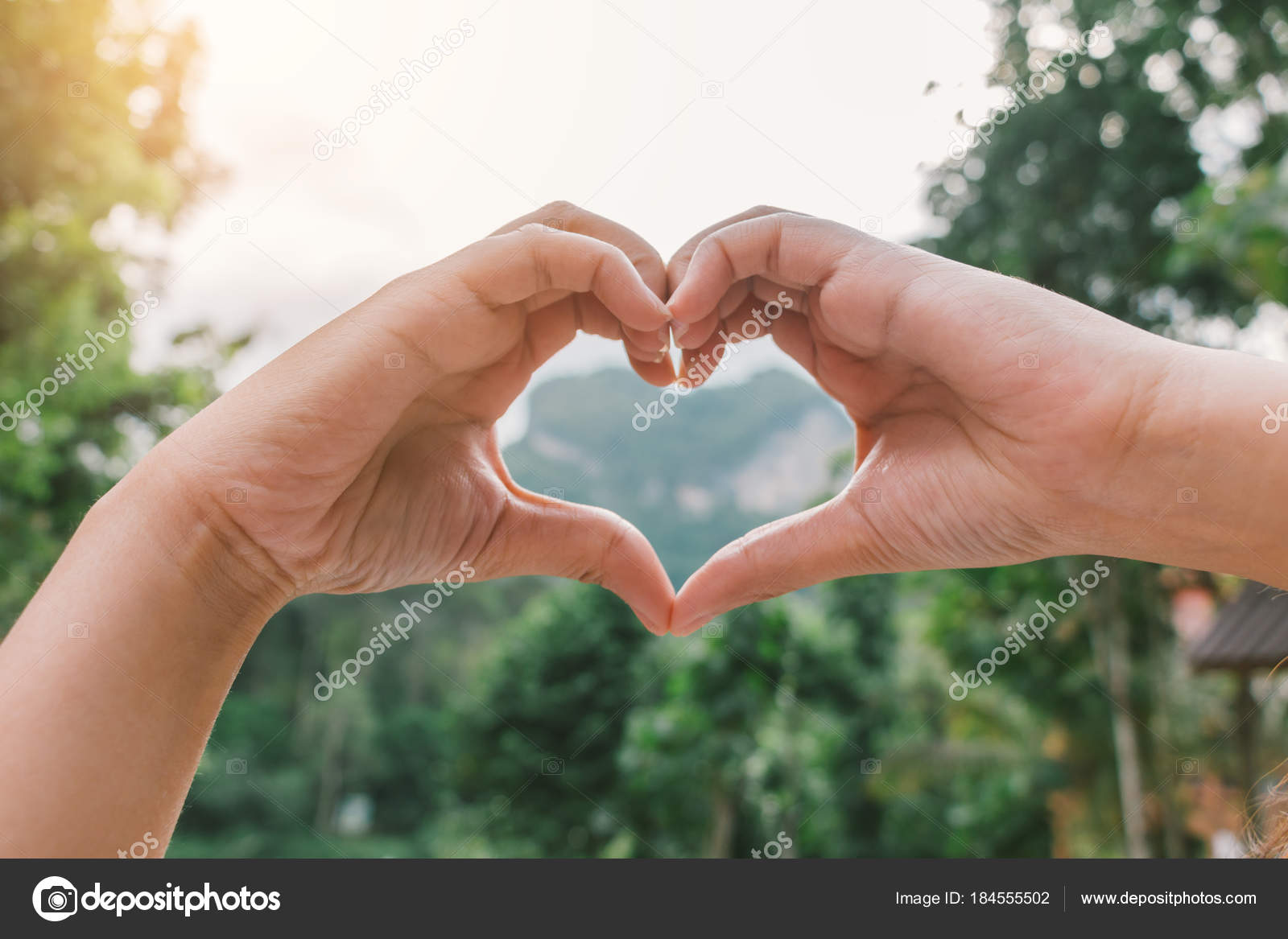 Hände Zeigen Ein Herz Mit Natur Als Hintergrund Buy This
