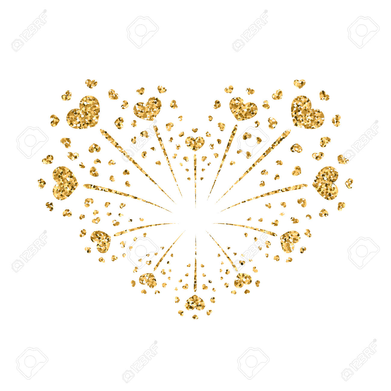 Herz Feuerwerk Gesetzt Gold Schöne Flache Goldene Feuerwerk