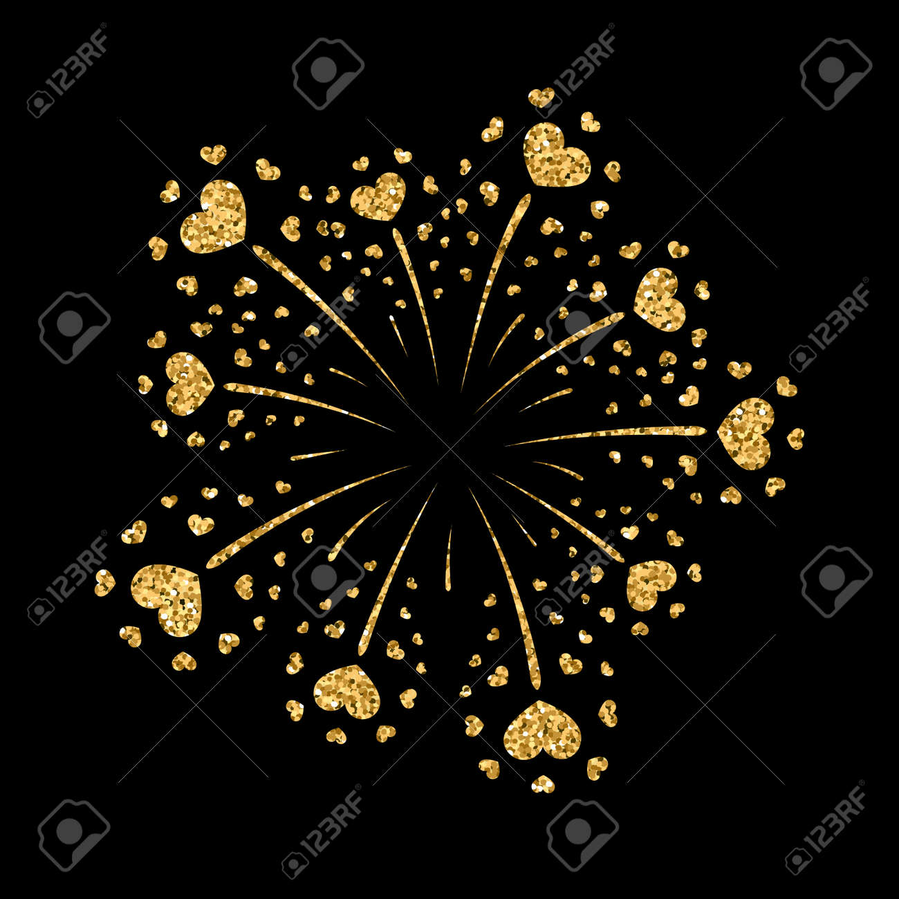 Herz Feuerwerke Gold Schöne Flache Goldene Feuerwerk Auf