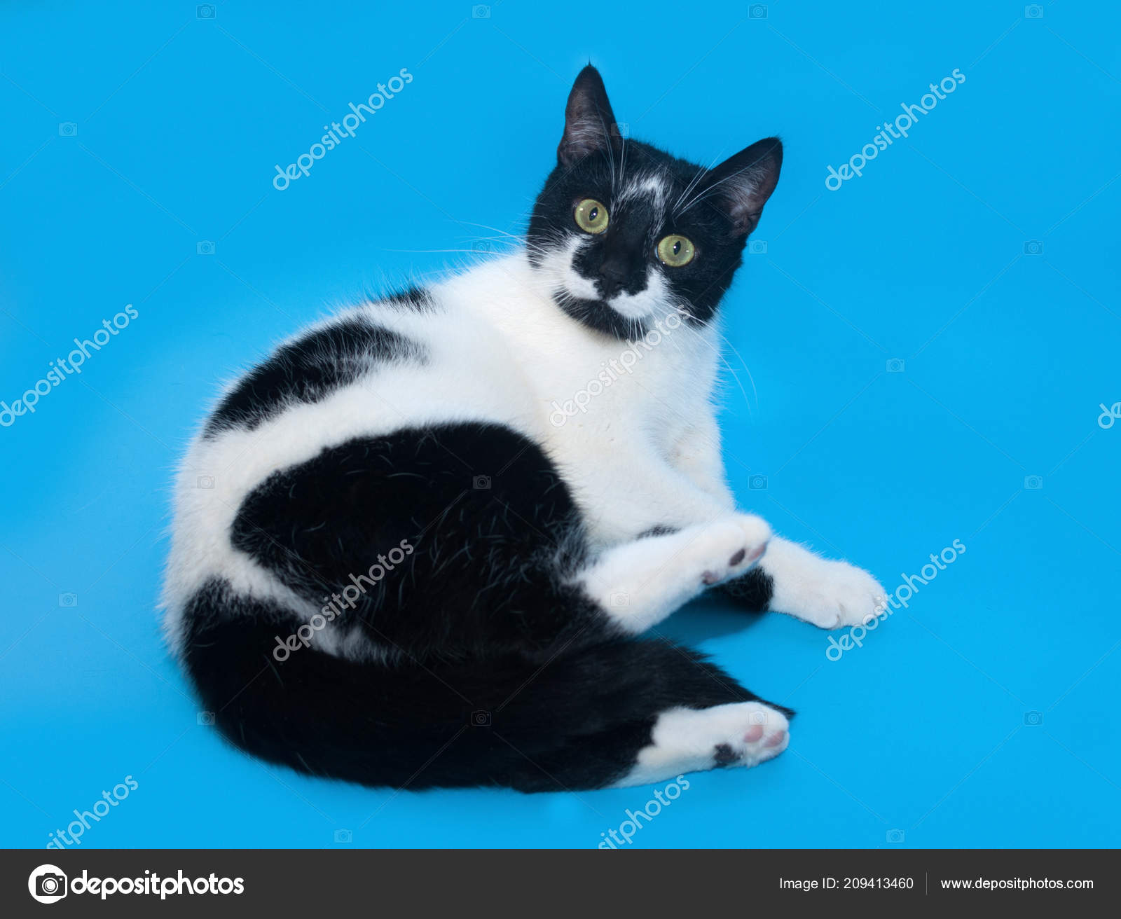 Lustige Schwarz Weiß Katze Weißen Hintergrund Isoliert