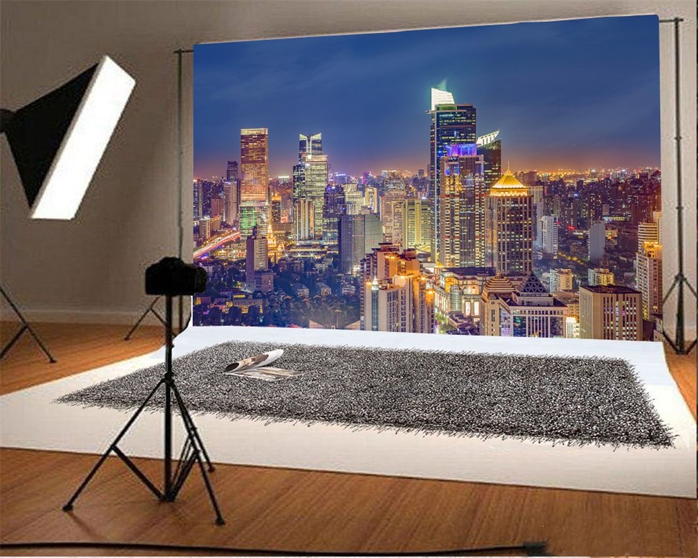 Yongfoto 3x2m Photography Backdrop American New York City Night View Cityscape Modern Building Shining Lights Nature Photo Background Backdrops For