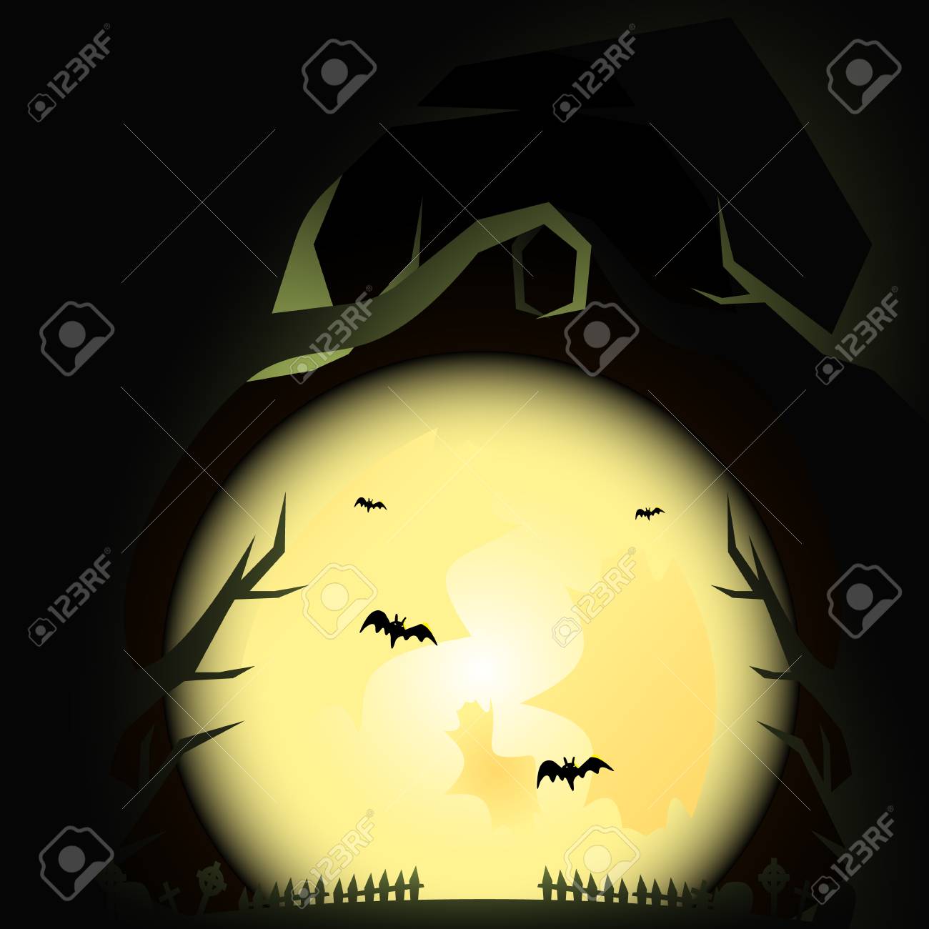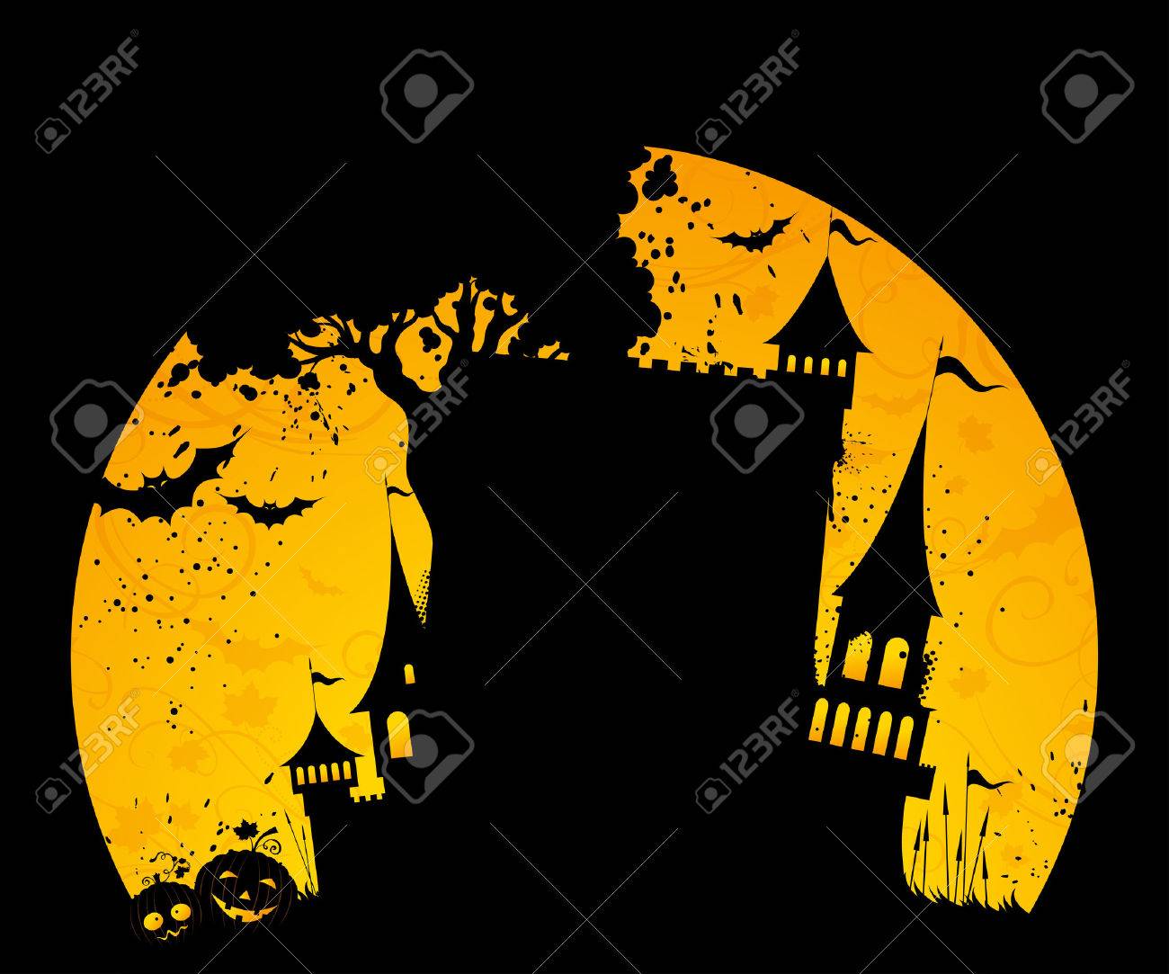 Voll Text Halloween Abbildung Mond Trick Vektor Behandeln Hintergrund Nacht Oder Kã¼rbis