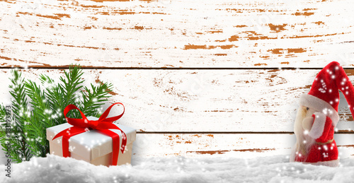 Nikolaus Weihnachtsgeschenk Tannengrün Holz Hintergrund