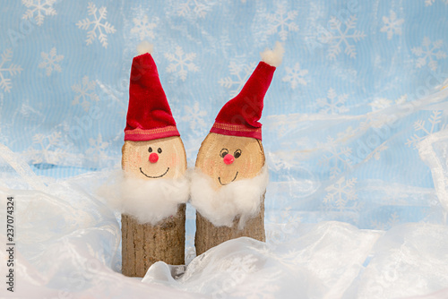 Nikolaus Paar Aus Holz Mit Bart Und Roter Mütze Weißer