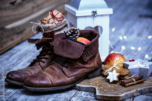 Nikolaus Weihnachten Hintergrund Mit Nikolausstiefel Und