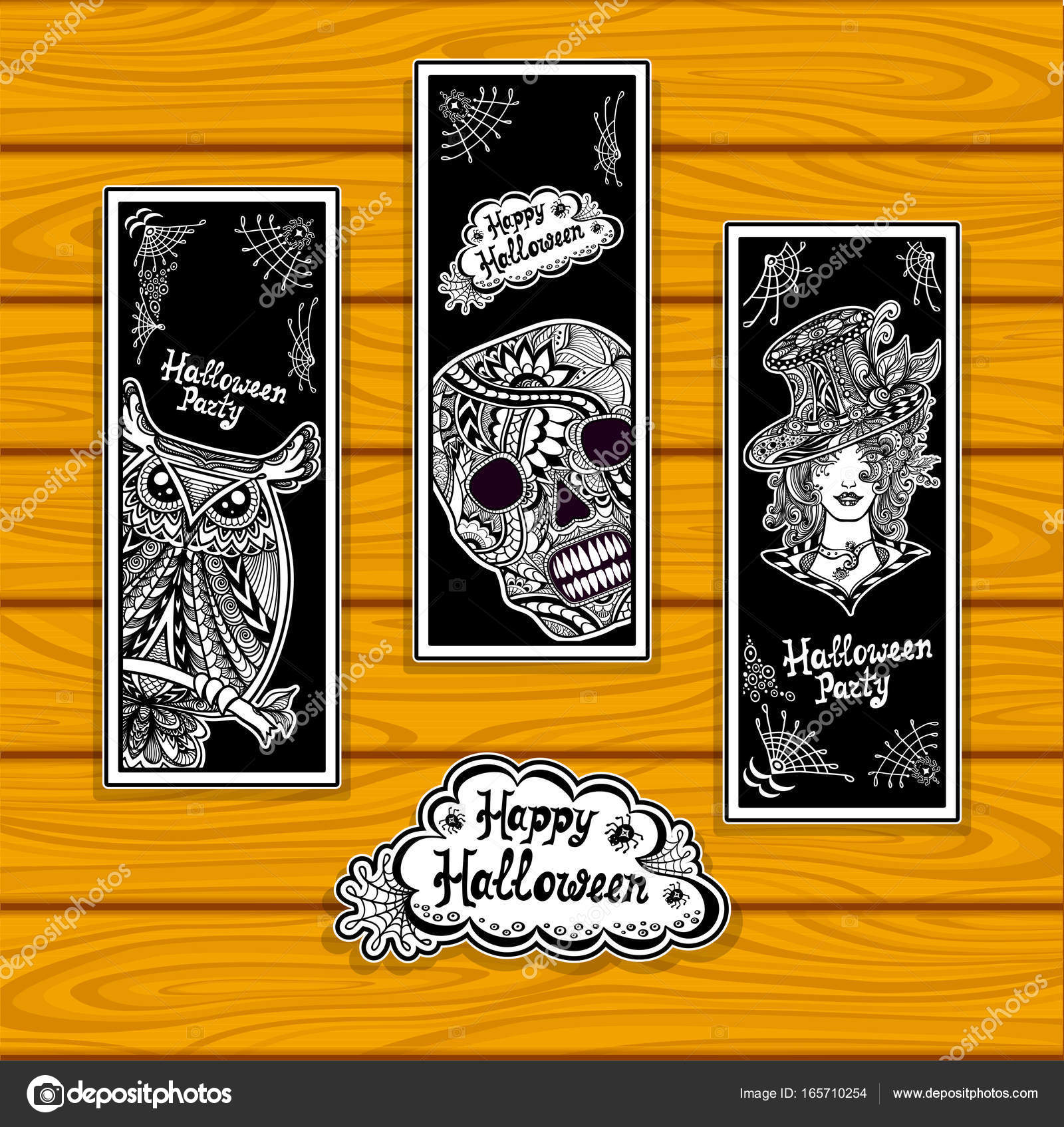 Setzen Sie Lesezeichen Zum Ausmalen An Halloween Mit Eule Schädel