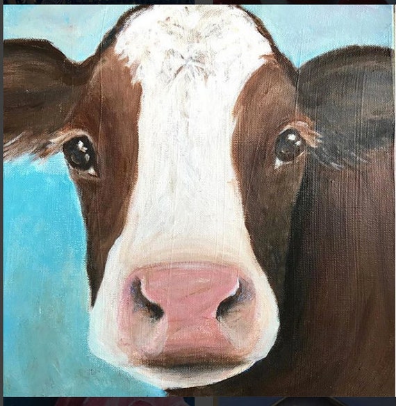 Leinwand Druck Ein Original Acryl Gemälde Penny Kuh Bauernhof Land Primitive Malerei 8 X 8