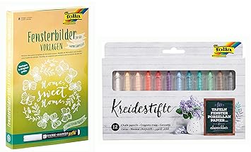 Folia 39229 Maxi Set Fensterbilder Für Die Kalte Jahreszeit Inkl 8 Malvorlagen 1 Kreidemarker Und 6 Kreidestiften