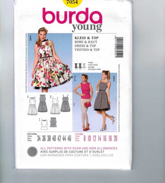 Verfehlt Nähen Schnittmuster Burda 7054 Misses Retro Rockabillykleid Mit Petticoat Oder Top Mit Schößchen Größe 8 10 12 14 16 18 20 Ungeschnitten