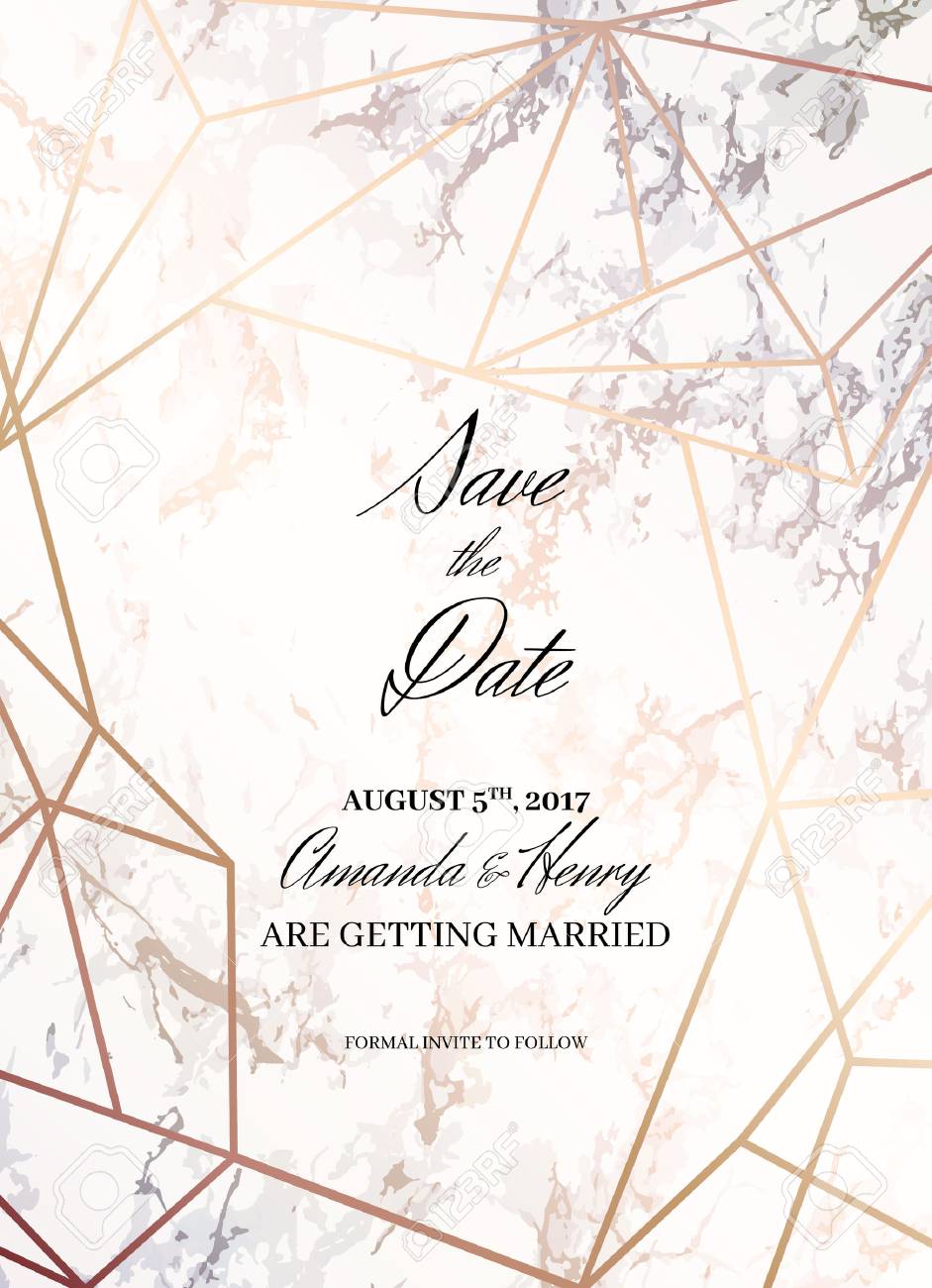 Ahorre La Plantilla Del Diseño De La Fecha Invitación A Una Fiesta Fondo De Mármol Blanco Y Modelo Geométrico Del Oro Color De Rosa Dimensiones