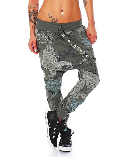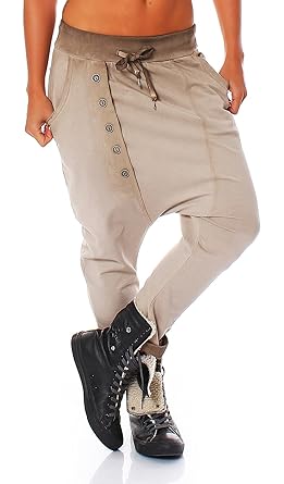 Malito Damen Haremshose Mit Tiefem Schnitt Hose Mit Knopfleiste Baggy Zum Tanzen Sweatpants Jogginghose 91097