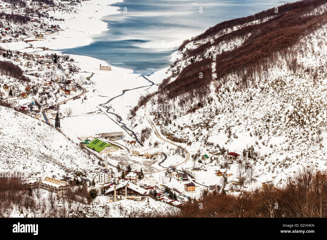Winter Mavrovo See Mazedonien Querformat Vom Skizentrum